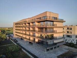 Zgrada sadrži 48 moderih stanova, od kojih je većina višestrano orijentirana (dvostrano ili trostrano) što smo postigli projektiranjem više stubišnih jezgri. Posebnu pažnju posvetili smo i privatnosti te komforu stanara, pa je na svakom stubištu smješten relativno mali broj stanova, čime se stvara mirniji i intimniji stambeni prostor. Kao dodatnu vrijednost za svakodnevni život, u sklopu projekta osmišljeni su i dječje igralište te zeleni vrt, koji stvaraju kvalitetan zajednički prostor za stanare svih generacija.